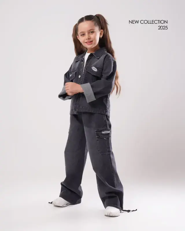 ست سه تیکه کت و شلوار جین کارگو دخترانه کالکشن عیدانه
