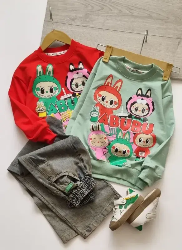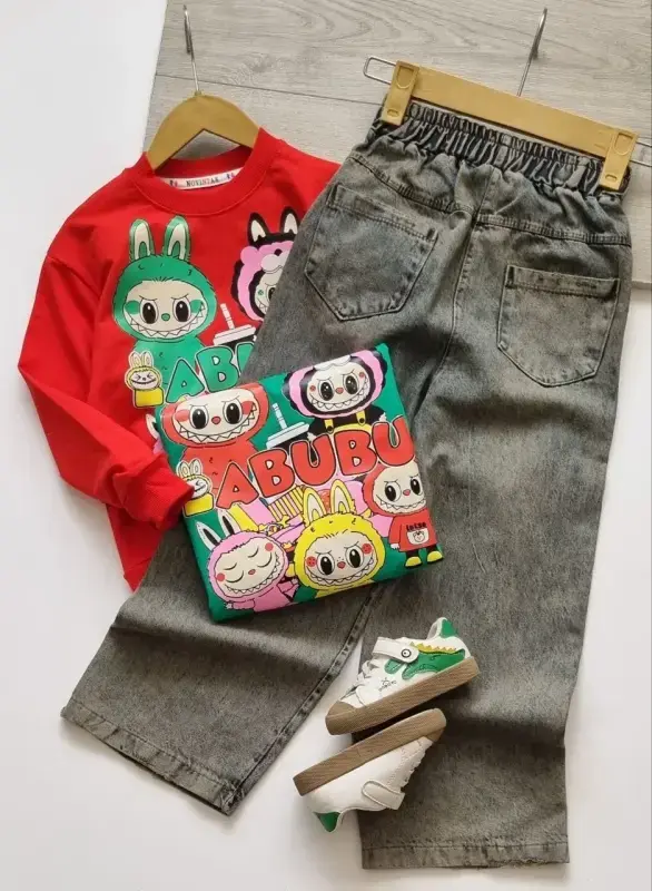 خرید عمده بلوز شلوار پاییزه بچگانه طرح ABABU