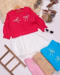 بلوز دخترانه طرح خرس و پاپیون بچگانه