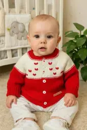ژاکت بافتنی نوزادی دخترانه دستبافت طرح قلب