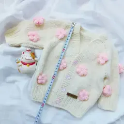 ژاکت بافتنی دخترانه نوزادی دستبافت طرح گل