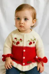 ژاکت بافتنی نوزادی دخترانه طرح انار و گل رز