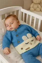 ست بافتنی پسرانه طرح خرگوشی مناسب نوزاد و کودک