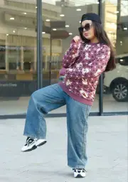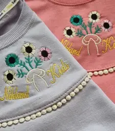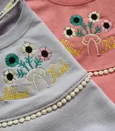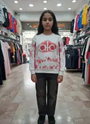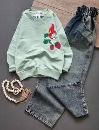 بلوز شلوار بچگانه طرح Alo با سنگ دوزی و جنس پنبه لاکرا و لی گرم بالا