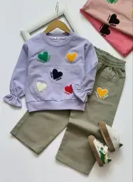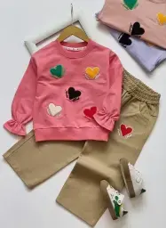 ست بلوز شلوار پاییزه دخترانه طرح قلب