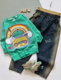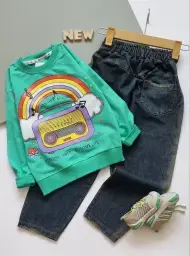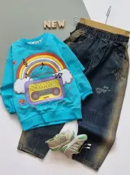 بلوز شلوار پاییزه دخترانه طرح رادیو و رنگین کمان