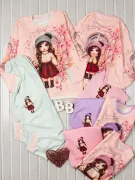 بلوز شلوار دخترانه طرح گل و عروسک اسپان