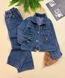 ست کت و شلوار جین اسپرت دخترانه و پسرانه دو جیب