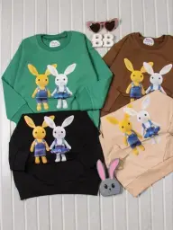 بلوز بافتنی طرح دو خرگوش برای کودکان