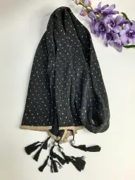 شال زنانه پاییزه دورو وارداتی طرح خالدار مشکی