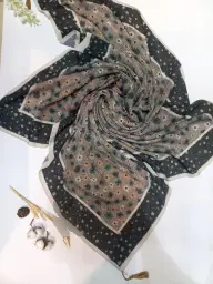 روسری پاییزه دست دوز طرح دار نخی سایز 140x140