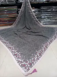 روسری پاییزه دست دوز نخی طرح دار سایز 140x140