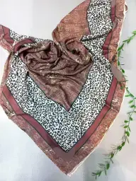 روسری زنانه برشکا پاییزه شاین دار طرح پلنگی و لوگو