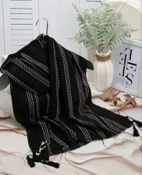 شال کوک دوزی مشکی منگوله دار سایز 190x70