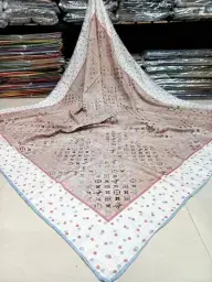 روسری پاییزه دست دوز نخی طرح کندویی سایز 140x140